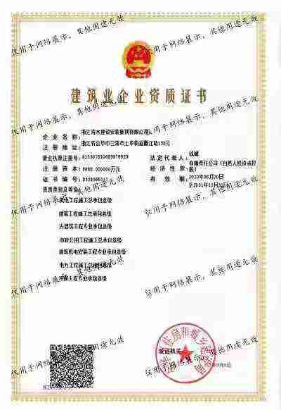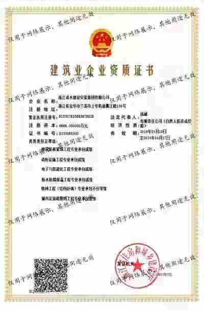 浙江清水建設安裝集團有限公司成立于2013年,注冊資金6688萬元。集團具有消防設施工程專業承包壹級、城市與道路照明專業承包壹級、電子與智能化專業承包壹級、建筑裝飾裝修專業承包貳級、防水防腐保溫專業承包貳級、市政工程施工總承包貳級、機電工程施工總承包貳級、建筑工程施工總承包貳級、電力工程施工總承包貳級、機電工程專業承包貳級、環(huán)保工程專業承包貳級、古建筑工程專業承包貳級、特種工程結構補強專業承包、建筑施工勞務作業專業承包(憑建筑業企業資質證書經營
